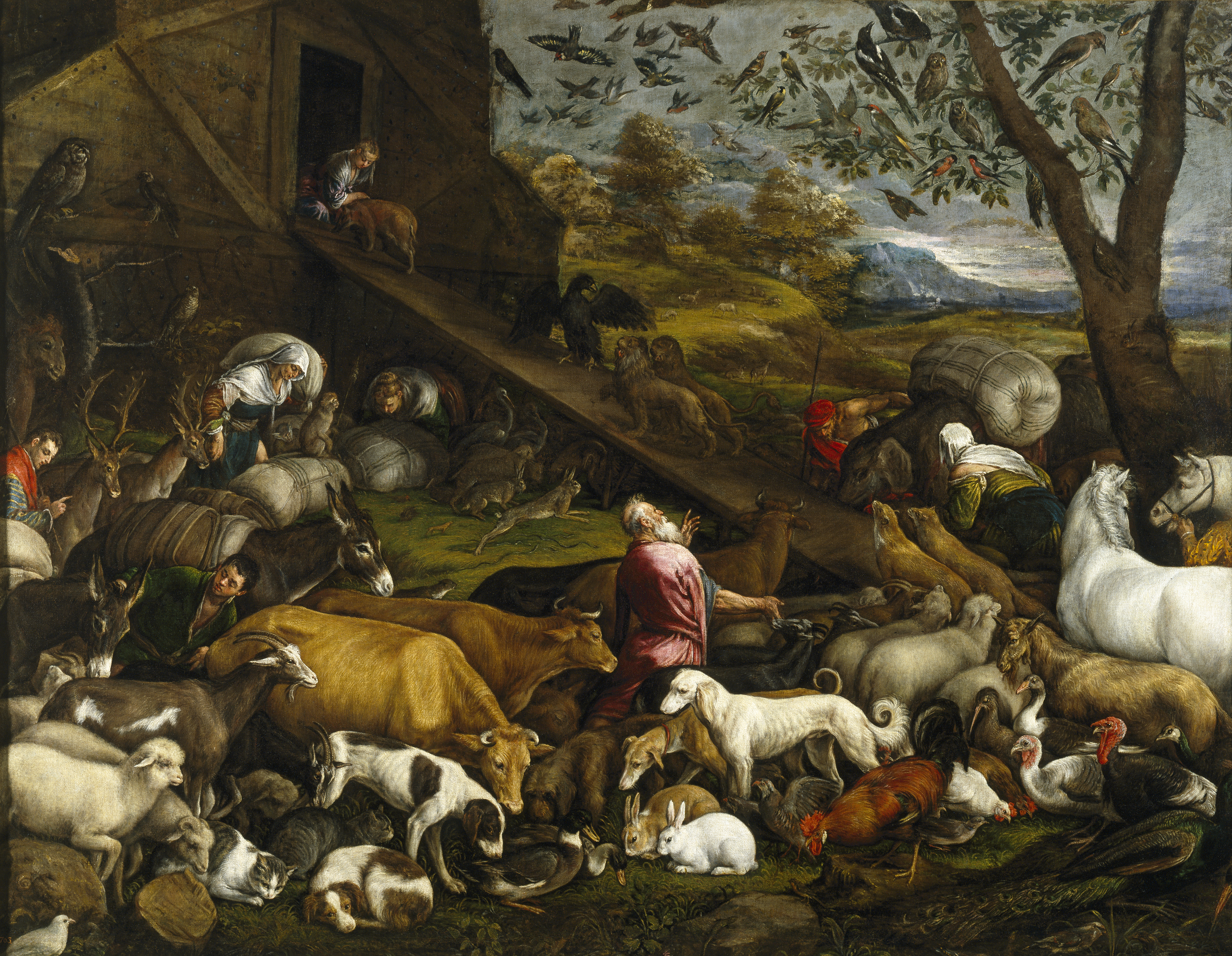 Entrada de los animales en el arca de Noé. 1570. Bassano, Jacopo (Museo Nacional de Prado, Galería Online)