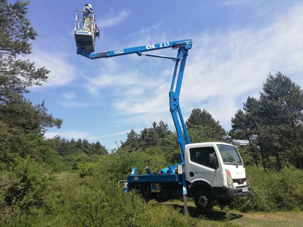 En este proyecto, me propuse seguir el rastro al agua absorbida a través de la corteza en ramas intactas de dos árboles típicos de los bosques templados de la península ibérica: el haya (Fagus sylvatica) y el pino rojo (Pinus sylvestris). Mi sitio de estudio está localizado en la zona del Monumento Natural del Monte Santiago (Burgos), en los alrededores de uno de los parajes naturales más emblemáticos del norte de la península ibérica: el salto del Nervión. Visité mis árboles de estudio en dos momentos del año en invierno, cuando el frío dificulta el bombeo de agua desde el suelo hasta la copa de los árboles, y en verano, cuando ocurre lo mismo pero debido a la escasa disponibilidad de agua en el suelo. Para detectar la absorción de agua a través de la corteza en ramas intactas en estos dos momentos del año, apliqué en las ramas un vendaje empapado en agua, pero no un agua cualquiera, sino un agua con un distintivo químico muy particular. El agua de mis vendajes era en esencia igual al agua del suelo o la lluvia, pero tenía unas propiedades químicas particulares que me permitirían detectarla a su paso a través de la corteza. Para alcanzar las ramas más altas de la copa de los árboles, utilicé un camión con plataforma elevadora, lo cual supuso un importante desafío, pero al ver que estaba a la altura, me sirvió de inspiración para futuros proyectos.