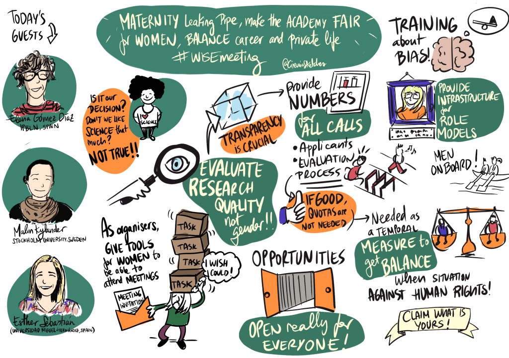 El objetivo de WISE fue generar un espacio de diálogo en el que detectar medidas y acciones urgentesa implantar en las diferentes sociedades ecológicas para revertir la situación actual, en la que cada vez hay menos mujeres que llegan a puestos de investigadoras o profesoras permanentes. Esta situación no se debe a que las mujeres carecen de calidad científica, sino a que las medidas para acabar con esta diferencia estructural injusta son claramente escasas e ineficientes.