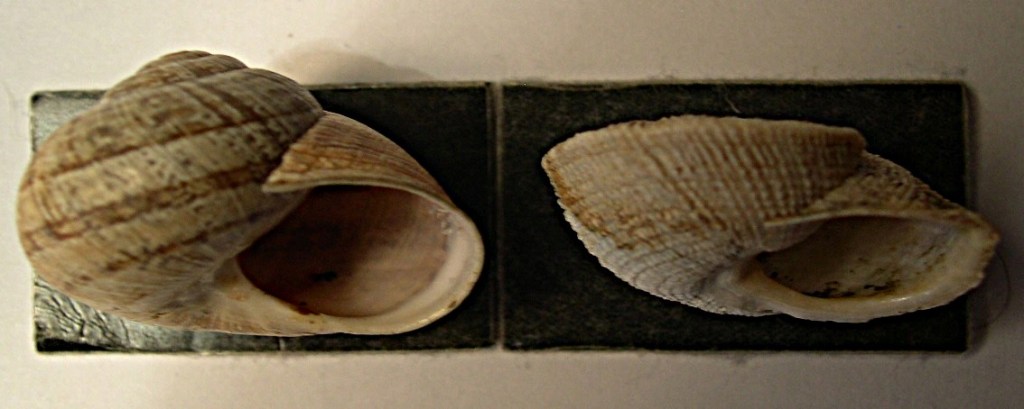 En el siglo XIX, los trabajos sobre genitalia de Schmidt (1853) permitieron incluir en el género Iberus otras especies, como Iberus alonensis, las cuales, a pesar de contar con conchas más convencionales, mostraban una genitalia compatible con la de Iberus gualtierianus. De hecho, Iberus gualtierianus e Iberus alonensis pueden hibridar y dar descendencia fértil (García San Nicolás 1957) y tienen cromosomas muy similares (Aparicio 1983), por lo que se llegaron a considerar subespecies de una única especie (de Bartolomé 1982). Pero, ¿cómo pueden ser la misma especie formas conquiológicas tan dispares (véase Figura 1)? Alonso et al. (1985) comprobaron que Iberus gualtierianus se encuentra solo en la Sierra de Gádor (Almería), Sierra Elvira (Granada) y Sierra de Jaén —ahora sabemos que hay otra población en el Valle de Almanzora—, habitando ambientes calizos y xéricos. En base a esto, propusieron que la concha aplanada era un ecotipo que había evolucionado repetidas veces en estas montañas a partir de Iberus alonensis —la especie de Iberus con la distribución más amplia— para permitirles usar las grietas kársticas como refugio durante la estivación y evitar así morir deshidratados.