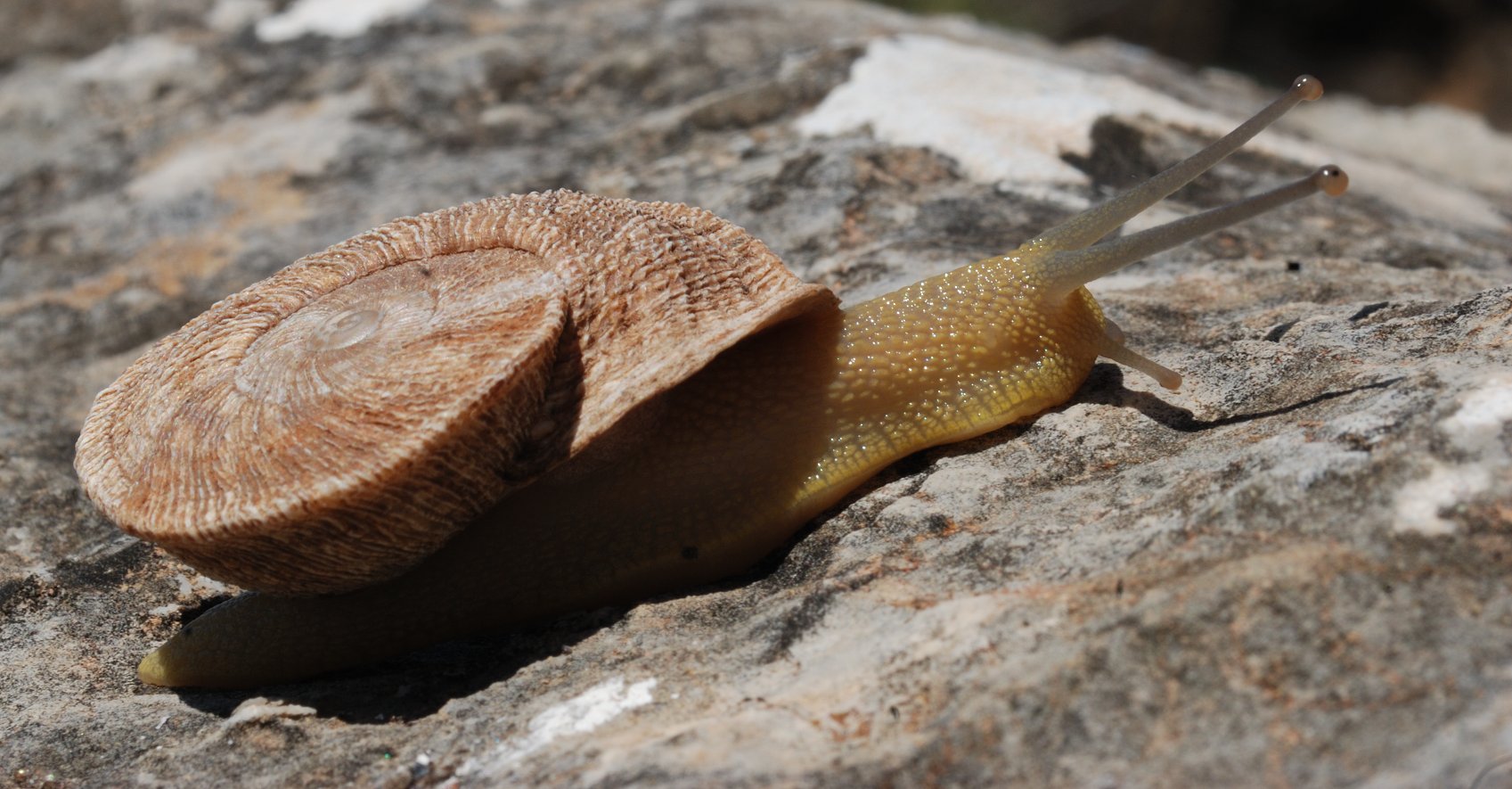 En el siglo XIX, los trabajos sobre genitalia de Schmidt (1853) permitieron incluir en el género Iberus otras especies, como Iberus alonensis, las cuales, a pesar de contar con conchas más convencionales, mostraban una genitalia compatible con la de Iberus gualtierianus. De hecho, Iberus gualtierianus e Iberus alonensis pueden hibridar y dar descendencia fértil (García San Nicolás 1957) y tienen cromosomas muy similares (Aparicio 1983), por lo que se llegaron a considerar subespecies de una única especie (de Bartolomé 1982). Pero, ¿cómo pueden ser la misma especie formas conquiológicas tan dispares (véase Figura 1)? Alonso et al. (1985) comprobaron que Iberus gualtierianus se encuentra solo en la Sierra de Gádor (Almería), Sierra Elvira (Granada) y Sierra de Jaén —ahora sabemos que hay otra población en el Valle de Almanzora—, habitando ambientes calizos y xéricos. En base a esto, propusieron que la concha aplanada era un ecotipo que había evolucionado repetidas veces en estas montañas a partir de Iberus alonensis —la especie de Iberus con la distribución más amplia— para permitirles usar las grietas kársticas como refugio durante la estivación y evitar así morir deshidratados.