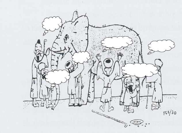 Un macroscopio es un instrumento para ver cosas grandes y complejas. Que tontería, pensarán ustedes, las cosas grandes se ven a simple vista si están cerca, y si están lejos se ven con un telescopio. La cosa no es tan simple. Recuerden el cuento indio de los sabios ciegos que querían saber como es un elefante, para lo cual solo podían usar el tacto...